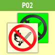 Знак P02 «Запрещается пользоваться открытым огнем и курить» (фотолюминесцентная пленка ГОСТ 34428-2018, 200х200 мм)