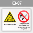 Знак «Взрывоопасно - запрещается пользоваться открытым огнем и курить», КЗ-07 (металл, 400х300 мм)