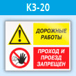 Знак «Дорожные работы - проход и проезд запрещен», КЗ-20 (пластик, 400х300 мм)