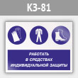 Знак «Работать в средствах индивидуальной защиты», КЗ-81 (металл, 400х300 мм)