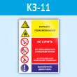 Знак «Взрывопожароопасно - не курить, не пользоваться открытым огнем, не пользоваться мобильным телефоном, выключить двигатель», КЗ-11 (металл, 300х400 мм)