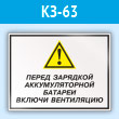 Знак «Перед зарядкой аккумуляторной батареи включи вентиляцию», КЗ-63 (пластик, 400х300 мм)