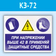 Знак «При напряжении выше 42 В применяй защитные средства», КЗ-72 (пластик, 400х300 мм)
