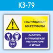 Знак «Пылящиеся материалы - работать в спецодежде, респираторе и очках», КЗ-79 (пленка, 400х300 мм)