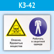 Знак «Опасно - ядовитые вещества. Работать в защитной одежде», КЗ-42 (пластик, 600х400 мм)