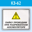 Знак «Пайку проводим при разряженном аккумуляторе», КЗ-62 (пластик, 600х400 мм)