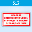 Знак (плакат) «Опасное электрическое поле. Без средств защиты проход запрещен», S13 (пластик, 200х100 мм)