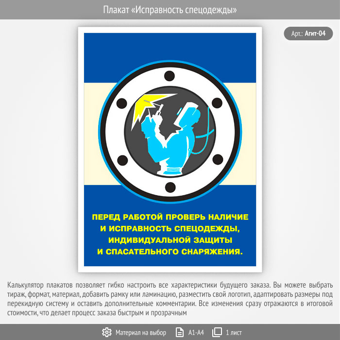 Плакат «Исправность спецодежды» (Агит-04, 1 лист) в Химках купить