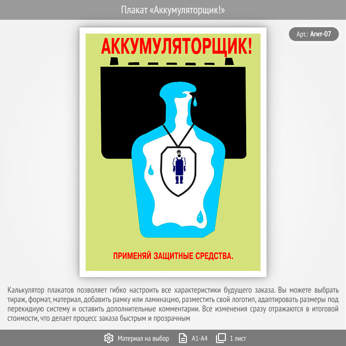 Плакат «Аккумуляторщик!» (Агит-07, 1 лист) в Химках купить