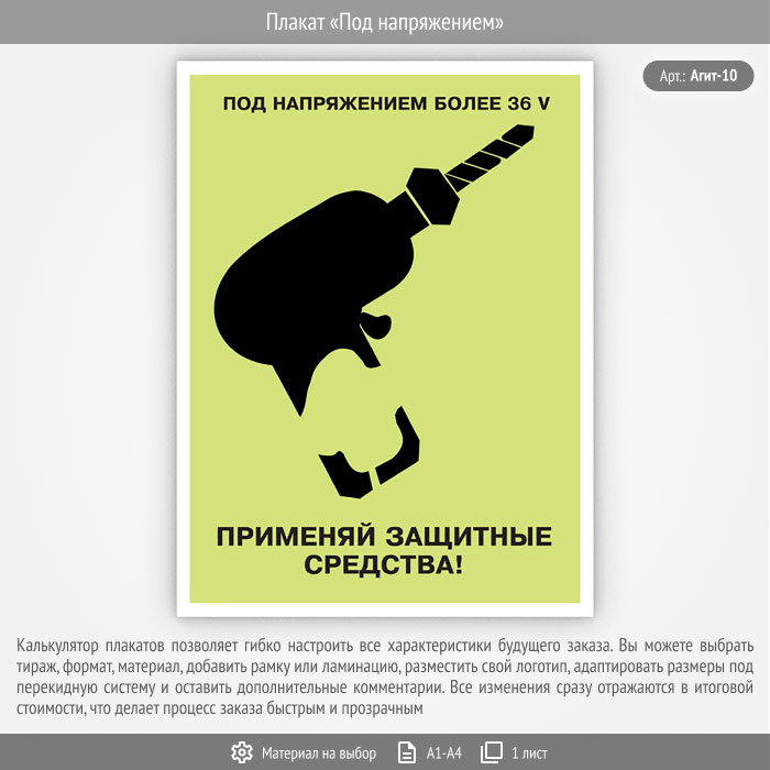 Плакат «Под напряжением» (Агит-10, 1 лист) в Химках купить
