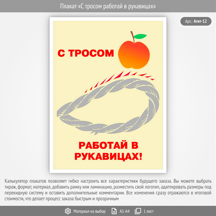 Плакат «С тросом работай в рукавицах» (Агит-12, 1 лист) в Химках купить