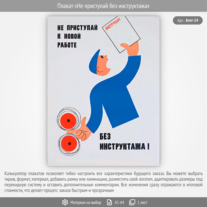 Плакат «Не приступай без инструктажа» (Агит-14, 1 лист) в Химках купить