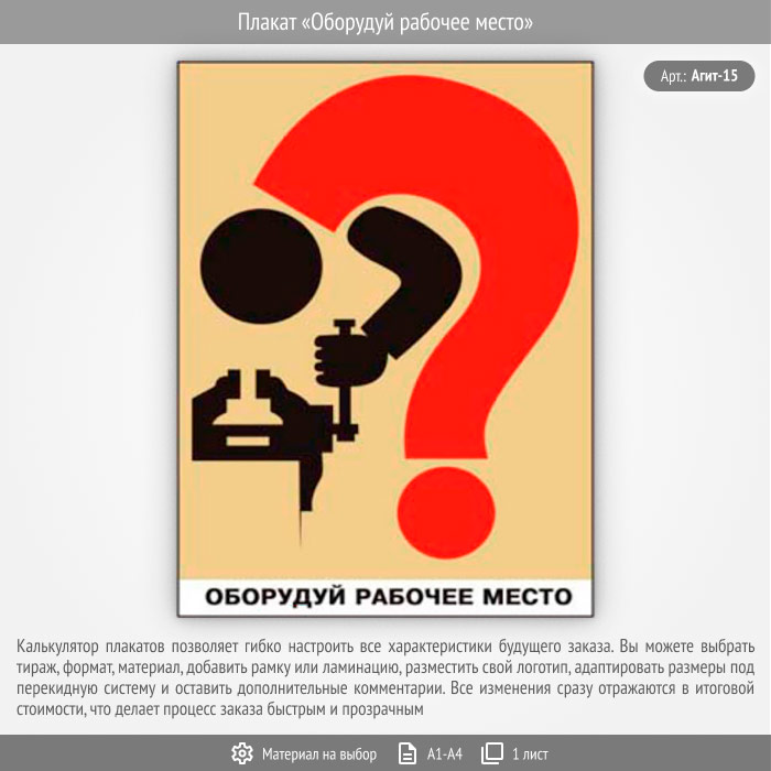 Плакат «Оборудуй рабочее место» (Агит-15, 1 лист) в Химках купить