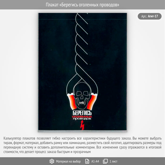 Плакат «Берегись оголенных проводов» (Агит-17, 1 лист) в Химках купить