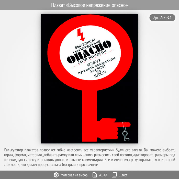 Плакат «Высокое напряжение опасно» (Агит-24, 1 лист) в Химках купить