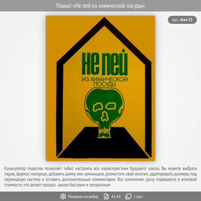 Плакат «Не пей из химической посуды» (Агит-25, 1 лист) в Химках купить