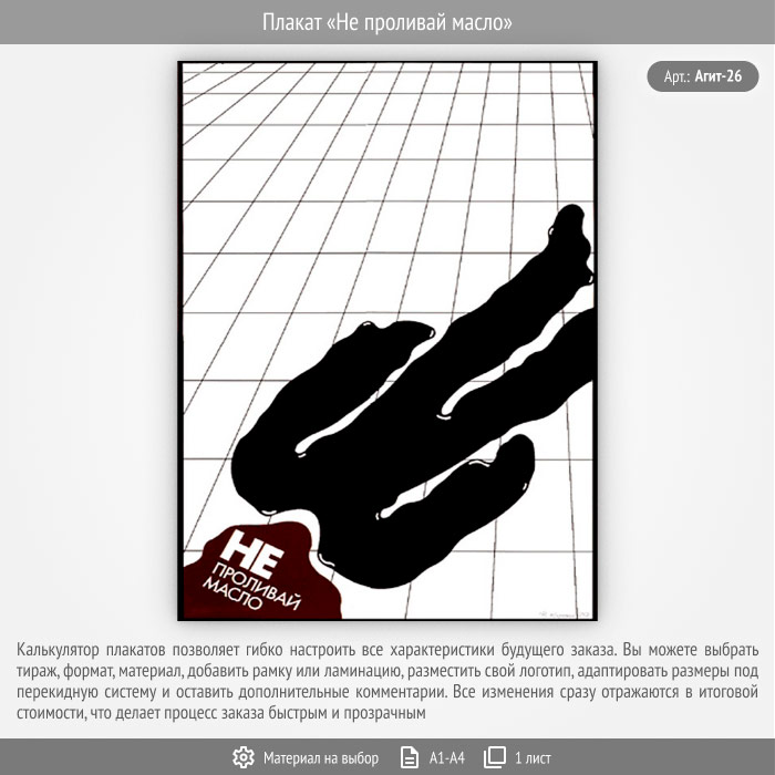 Плакат «Не проливай масло» (Агит-26, 1 лист) в Химках купить