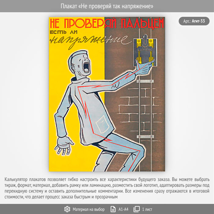 Плакат «Не проверяй так напряжение» (Агит-33, 1 лист) в Химках купить