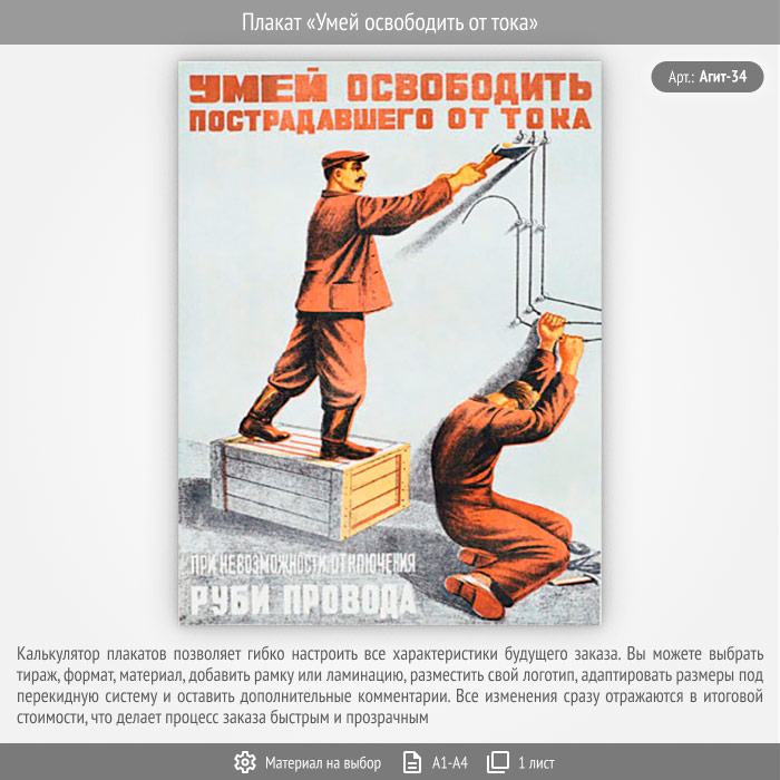 Плакат «Умей освободить от тока» (Агит-34, 1 лист) в Химках купить