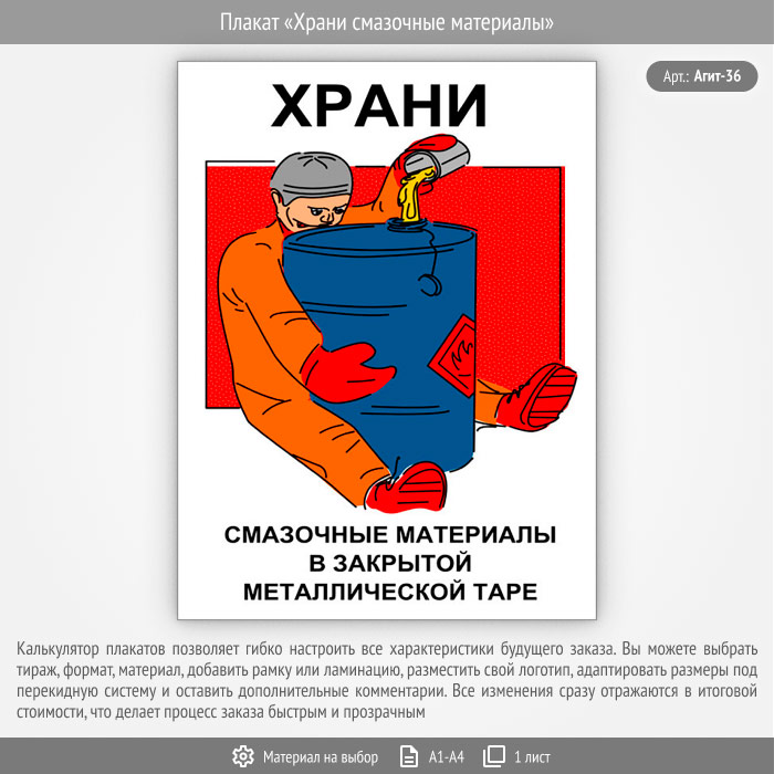 Плакат «Храни смазочные материалы» (Агит-36, 1 лист) в Химках купить