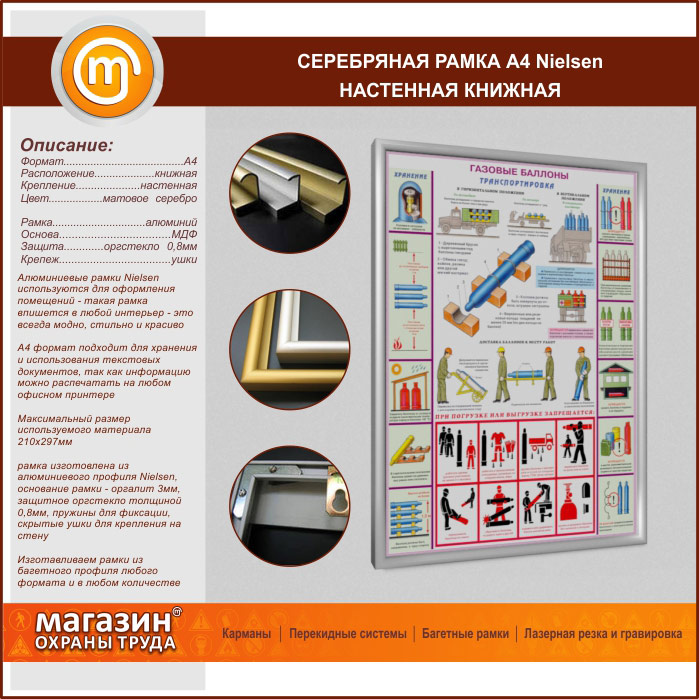 Багетная настенная рамка «Nielsen» А4 формата, книжная, матовое серебро в Химках купить