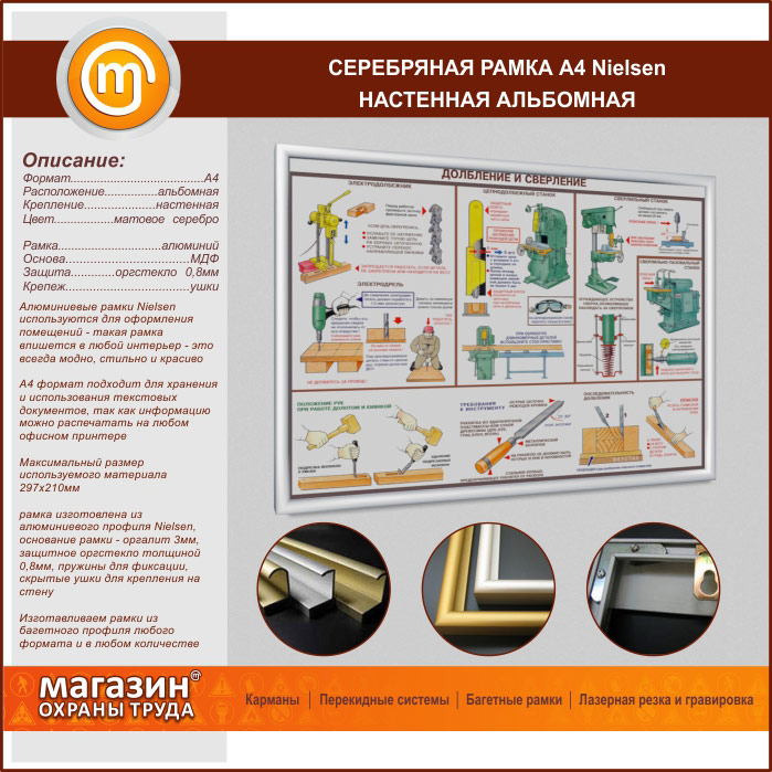 Багетная настенная рамка «Nielsen» А4 формата, альбомная, матовое серебро в Химках купить