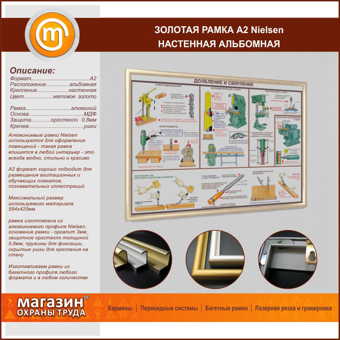 Багетная настенная рамка «Nielsen» А2 формата, альбомная, матовое золото в Химках купить
