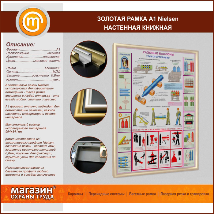 Багетная настенная рамка «Nielsen» А1 формата, книжная, матовое золото в Химках купить
