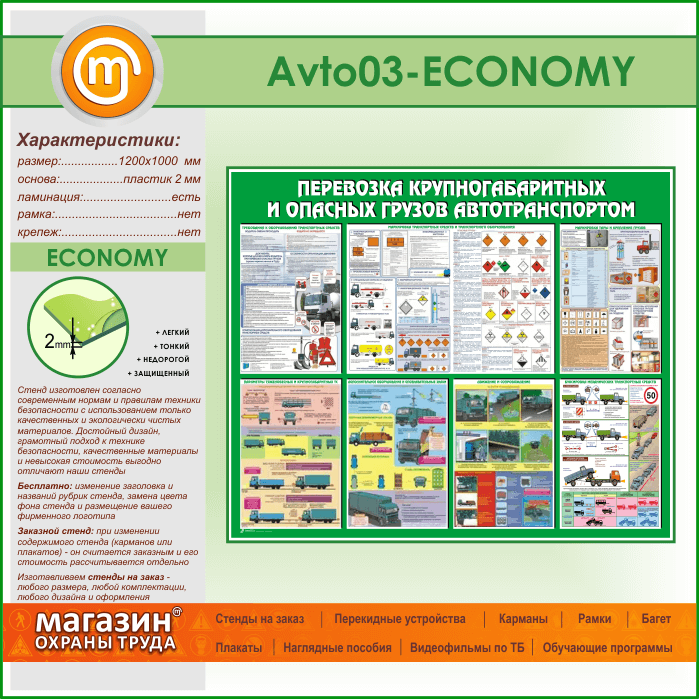 Стенд «Перевозка крупногабаритных и опасных грузов автотранспортом» (AV-03-ECONOMY) в Химках купить