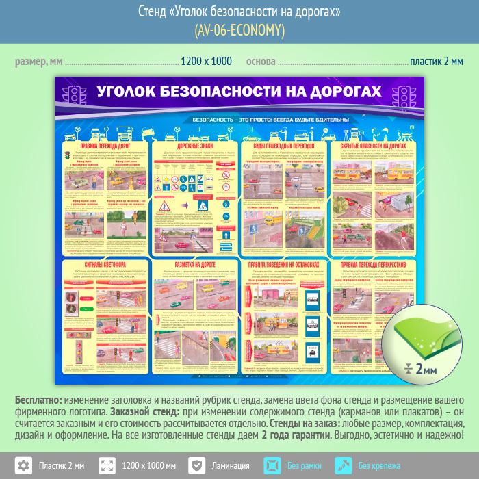 Стенд «Уголок безопасности на дорогах» (AV-06-ECONOMY) в Химках купить