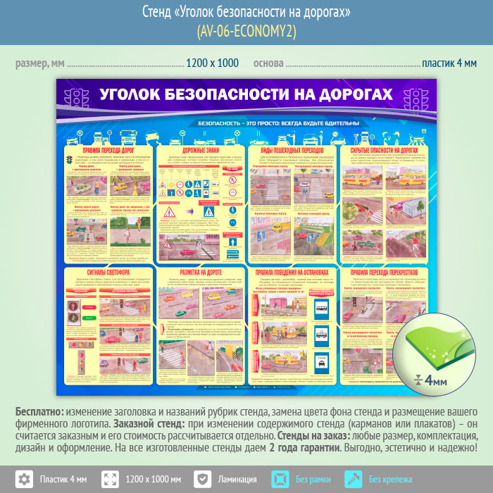 Стенд «Уголок безопасности на дорогах» (AV-06-ECONOMY2) в Химках купить