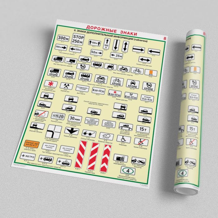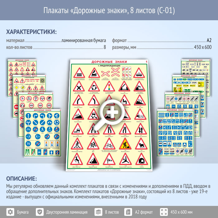 Плакаты «Дорожные знаки» (С-01, ламинированная бумага, А2, 8 листов) в Химках купить