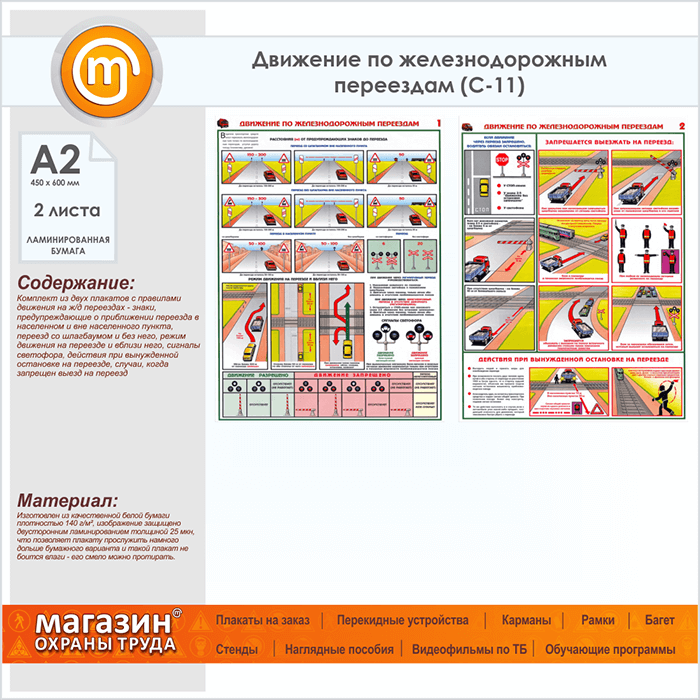 Плакаты «Движение по железнодорожным переездам» (С-11, ламинированная бумага, А2, 2 листа) в Химках купить