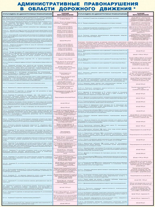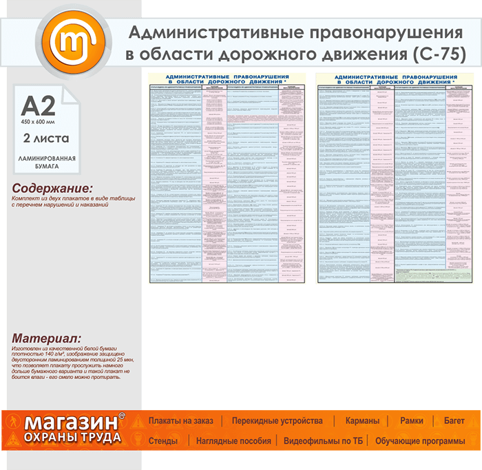 Плакаты «Административные правонарушения в области дорожного движения» (С-75, ламинированная бумага, А2, 2 листа) в Химках купить