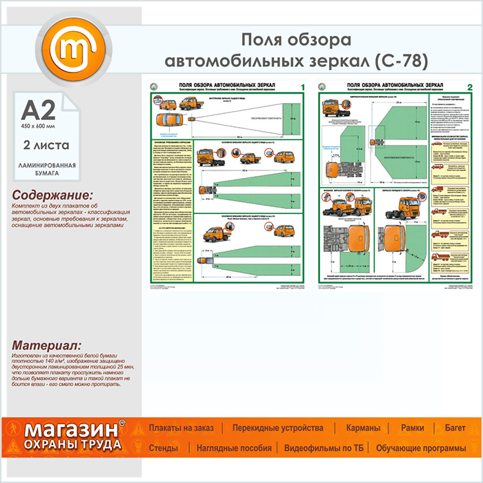 Плакаты «Поля обзора автомобильных зеркал» (С-78, ламинированная бумага, А2, 2 листа) в Химках купить