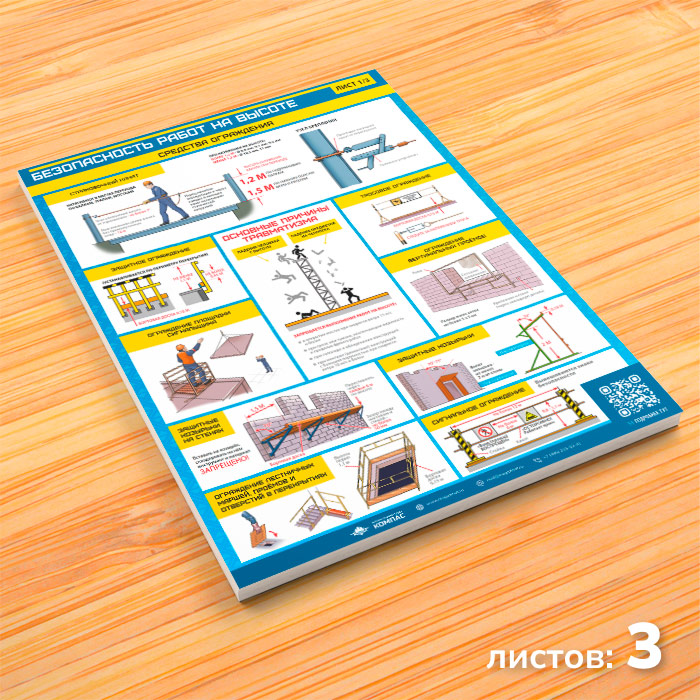 Плакаты «Безопасность работ на высоте» (М-52, ламинированная бумага, А2, 3 листа) в Химках купить