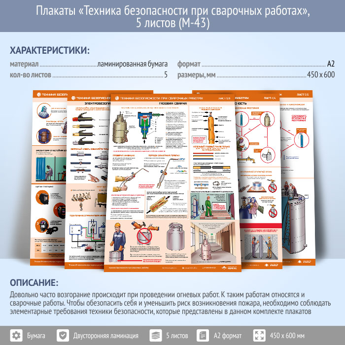 Плакаты «Техника безопасности при сварочных работах» (М-43, ламинированная бумага, А2, 5 листов) в Химках купить