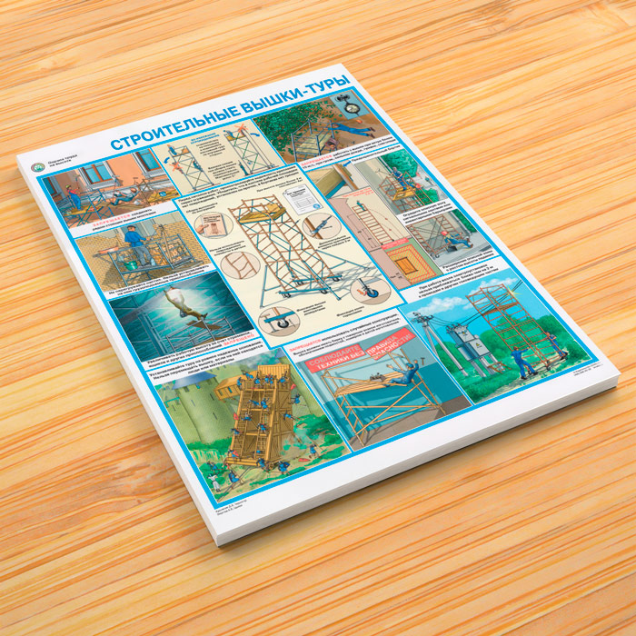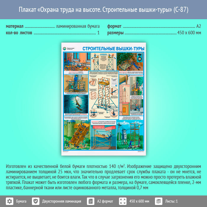 Плакат «Охрана труда на высоте. Строительные вышки-туры» (С-87, ламинированная бумага, А2, 1 лист) в Химках купить