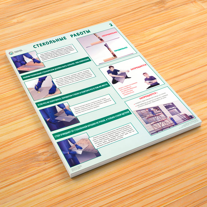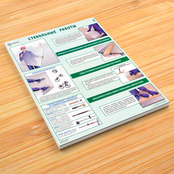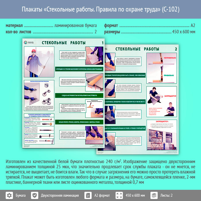 Плакаты «Стекольные работы. Правила по охране труда» (С-102, ламинированная бумага, А2, 2 листа) в Химках купить