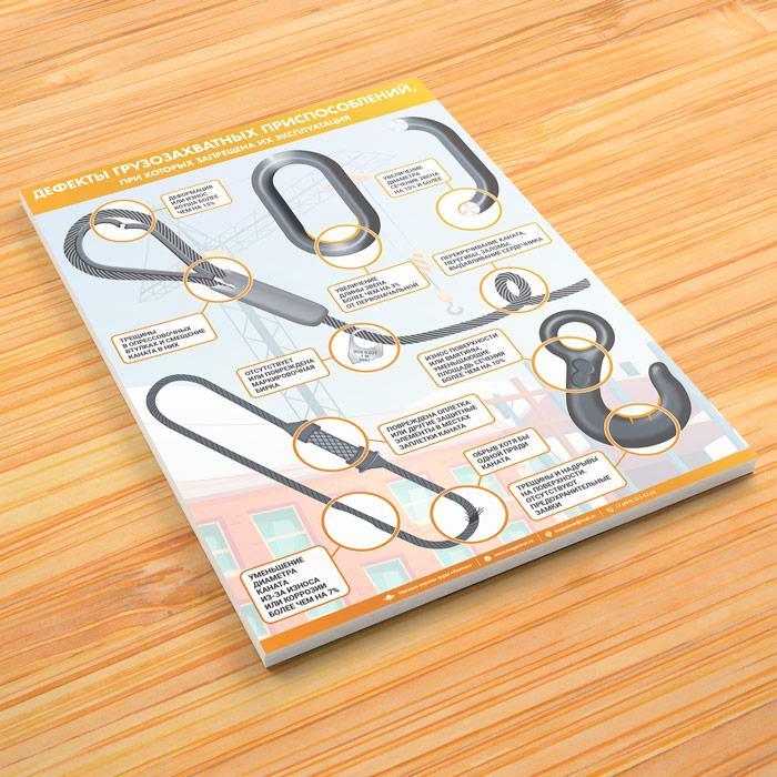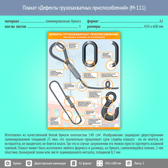 Плакат «Дефекты грузозахватных приспособлений» (М-111, ламинированная бумага, А2, 1 лист) в Химках купить