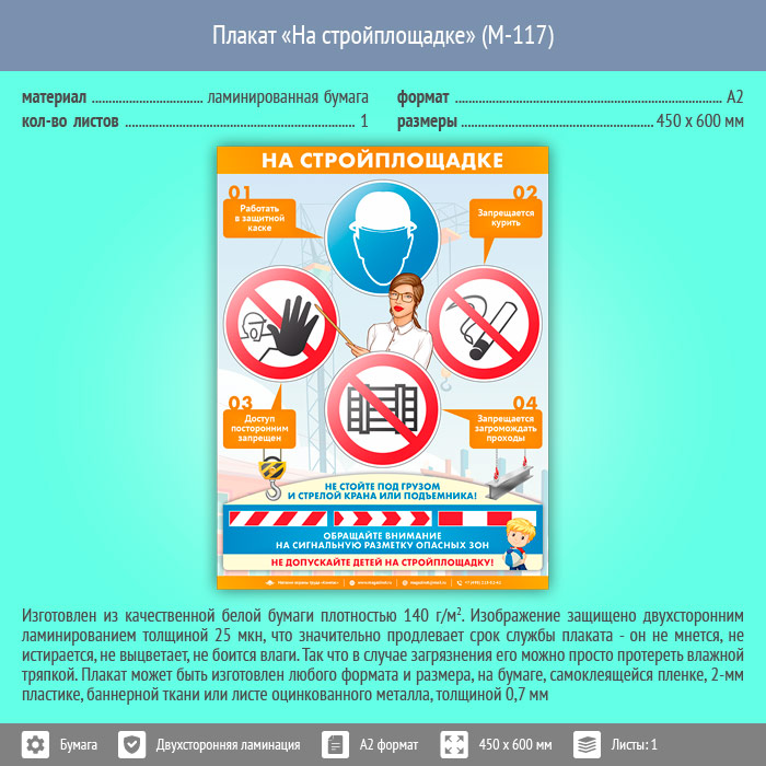 Плакат «На стройплощадке» (М-117, ламинированная бумага, А2, 1 лист) в Химках купить