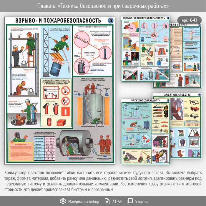Плакаты «Техника безопасности при сварочных работах» (С-43, 5 листов) в Химках купить