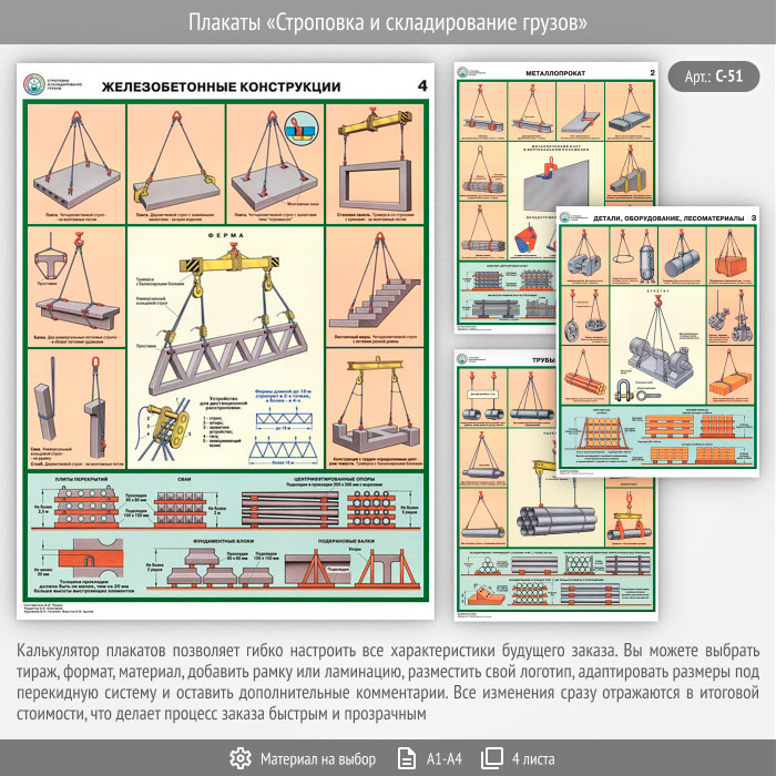 Плакаты «Строповка и складирование грузов» (С-51, 4 листа) в Химках купить