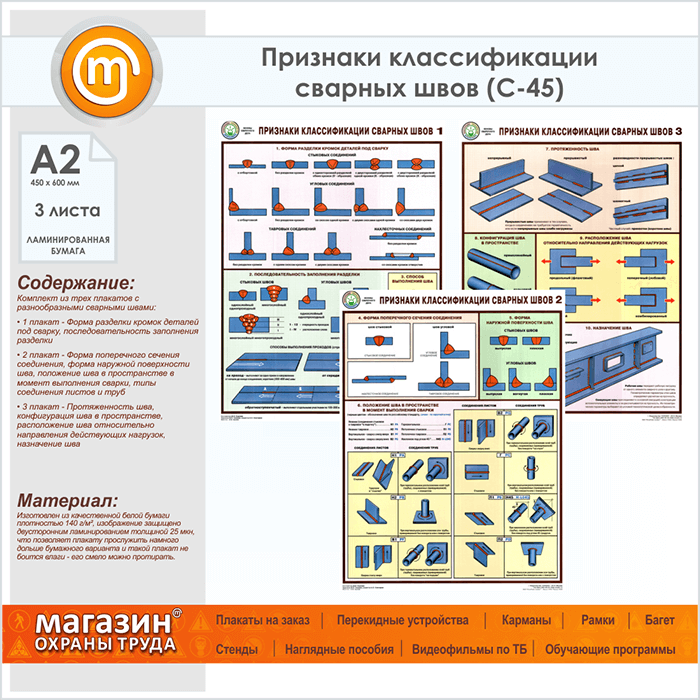 Плакаты «Признаки классификации сварных швов» (С-45, ламинированная бумага, А2, 3 листа) в Химках купить