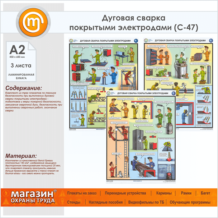Плакаты «Дуговая сварка покрытыми электродами» (С-47, ламинированная бумага, А2, 3 листа) в Химках купить