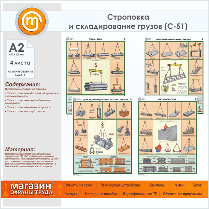 Плакаты «Строповка и складирование грузов» (С-51, ламинированная бумага, А2, 4 листа) в Химках купить