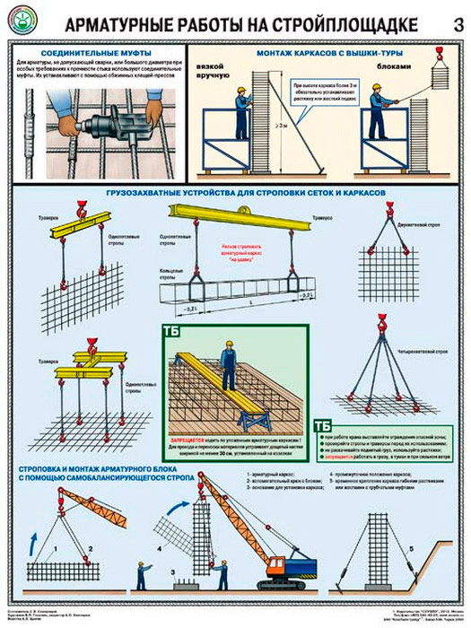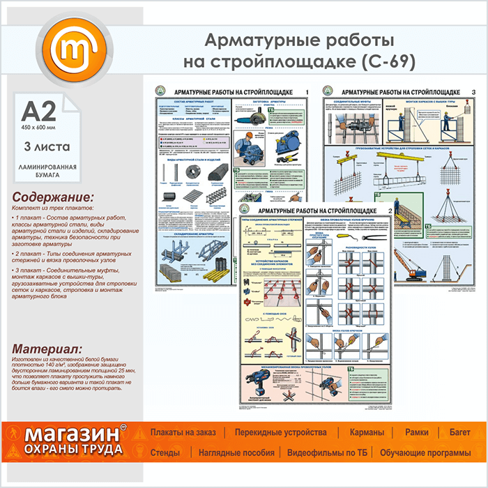 Плакаты «Арматурные работы на стройплощадке» (С-69, ламинированная бумага, А2, 3 листа) в Химках купить