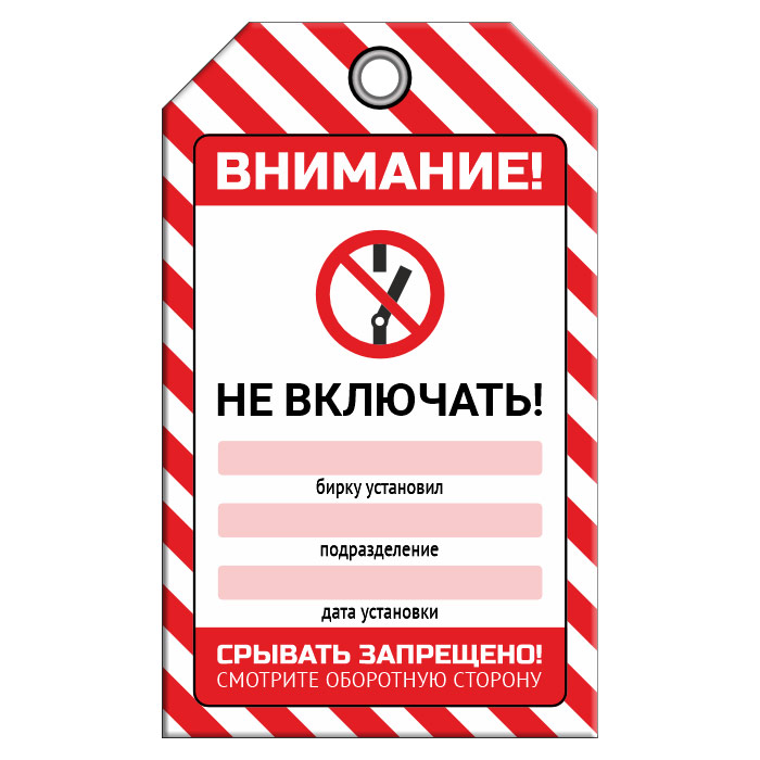 Бирка «НЕ ВКЛЮЧАТЬ!» (1 шт., двусторонняя, пластик, 70х115 мм) в Химках купить