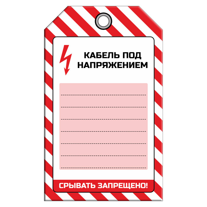 Бирка «КАБЕЛЬ ПОД НАПРЯЖЕНИЕМ», 2 вариант (1 шт., односторонняя, пластик, 70х115 мм) в Химках купить