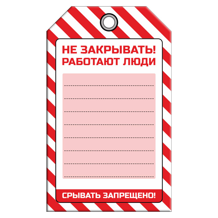 Бирка «НЕ ЗАКРЫВАТЬ! РАБОТАЮТ ЛЮДИ» (1 шт., односторонняя, пластик, 70х115 мм) в Химках купить